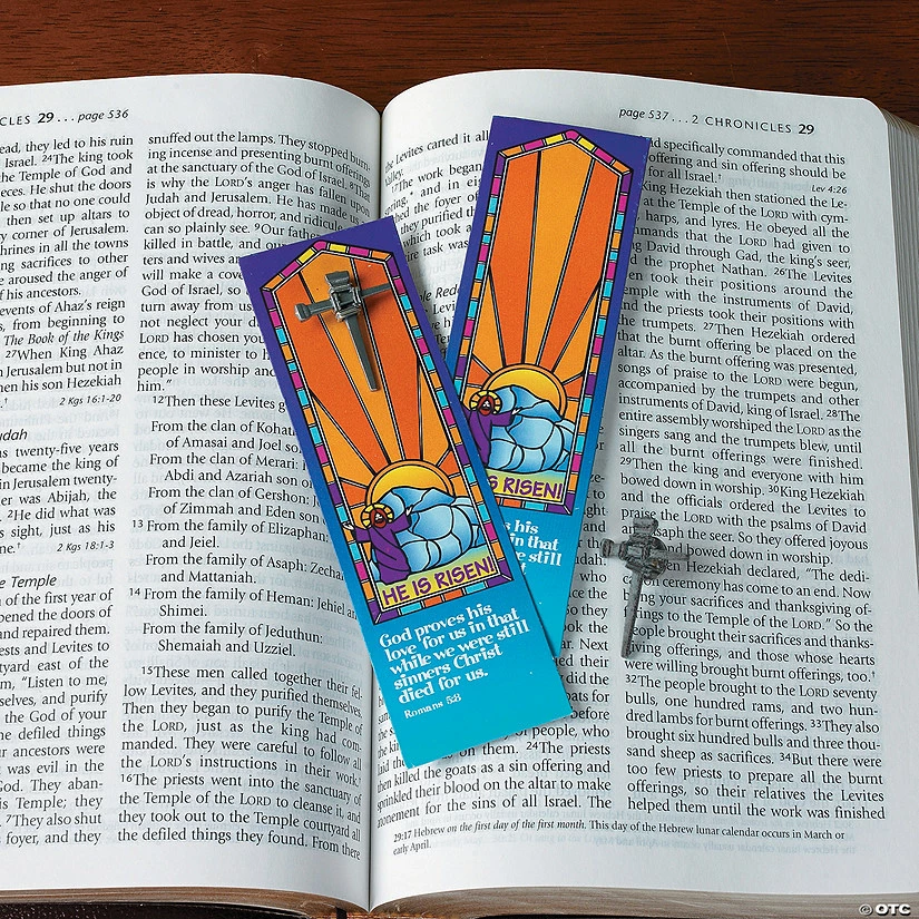 Two gifts in one, our pin and religious bookmark sets are a thoughtful way to share the spiritual meaning of Easter with family and friends. Add them to church Bible study goody bags during Holy Week. Metal pins, 1″; cardstock bookmarks, 6″. ยฉย OTC