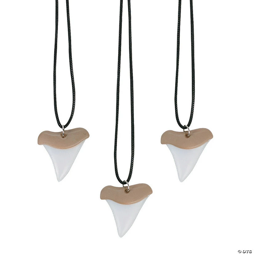 Shark Tooth Necklaces. With the look of a real sharkβs tooth! Kids will love wearing and sharing these authentic-looking Shark Tooth Necklaces. Hand out necklaces in birthday party treat bags or give each guest a Shark Tooth Necklace to wear as they arrive at your ocean-themed bash or beach party. Each 1″ plastic tooth is on a 30″ nylon cord. Β© OTC